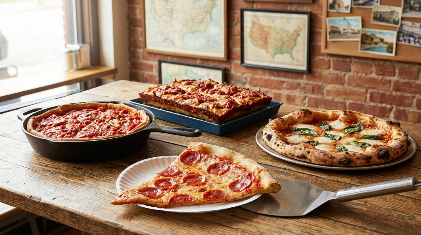 We’ve covered thousands of miles in just a few hundred words, traveling from the foldable street food of Manhattan to the buttery, industrial pans of Detroit. What’s clear is that American pizza is less a single food item and more a collage of adaptation, local history, and fierce civic pride.